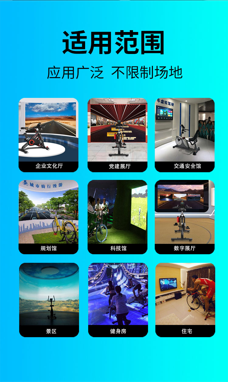 虛拟騎行是通過智能(néng)硬件采集室内騎行數據,在大屏幕中(zhōng)呈現3D騎行場景。為(wèi)室内騎行帶來愉悅、身臨其境的運動體(tǐ)驗。高品質(zhì)的3D場景,多(duō)人本地對戰比賽,HIGH翻全場。通過科(kē)學(xué)的運動數據收集與分(fēn)析,幫助用(yòng)戶得到更為(wèi)持久有(yǒu)效的運動效果。面向騎行的智能(néng)硬件,運轉穩定,廣泛适配于各品牌動感單車(chē)及公(gōng)路車(chē)等,升級成本較低。